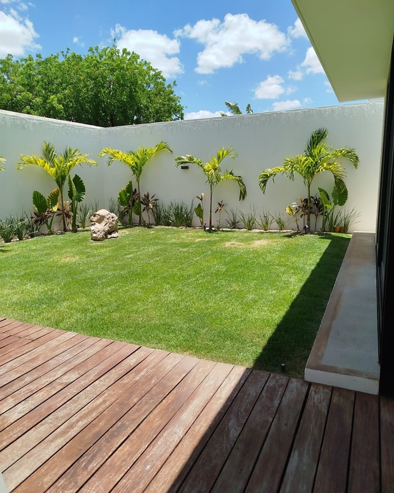 Contamos con amplia experiencia en el diseño, ejecución y mantenimiento de jardines tropicales, áreas verdes residenciales, comerciales e institucionales. Además, somos productores de pasto natural en Mérida, lo que nos permite ofrecer precios competitivos y calidad garantizada.